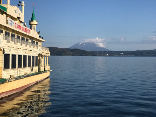 在洞爺湖的溫泉旅館,房間對正洞爺湖。遠遠的,就是羊蹄山了。剛開始,以為是富士山呢。山頂部位已經是泛白色,應該是開始積雪了吧。